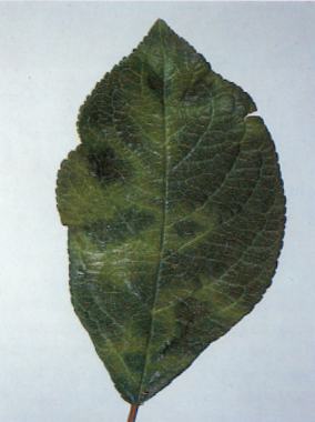 Foglia di susino Bluefre con sintomi di vaiolatura