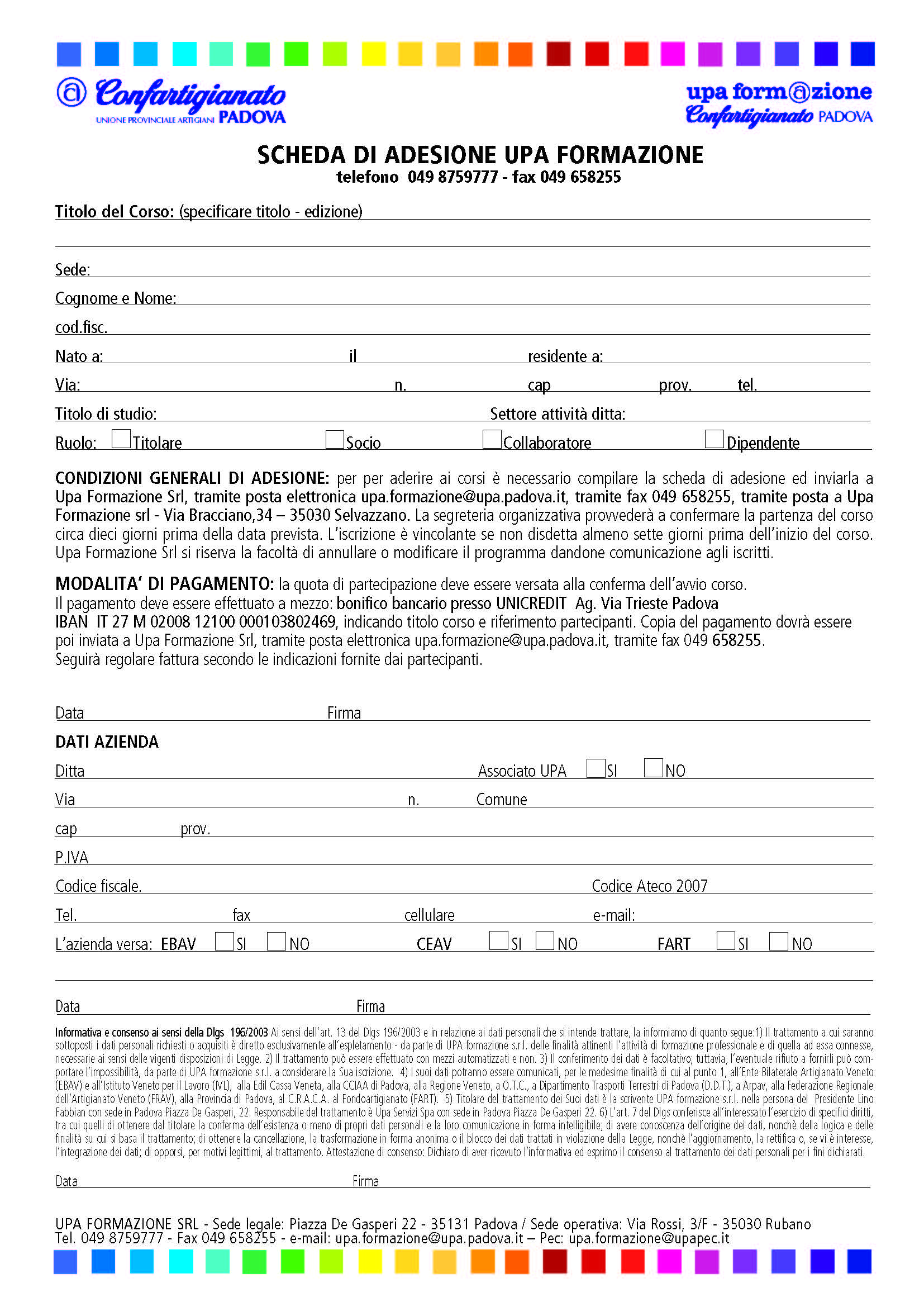 - Corso di formazione per conducenti di veicoli stradali che trasportano animali vertebrati vivi - UPA PADOVA; date (FORMAZIONE ON-LINE): lezioni teoriche 12, 19 e 26 settembre 2020; esame finale: 03 ottobre 2020. Scheda informativa; Scheda di iscrizione